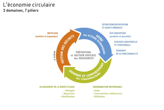 Selon la définition de l’ADEME, l’économie circulaire est « l’ensemble de pratiques dont la finalité est de préserver les ressources naturelles comme l’eau, l’air, le sol et les matières premières. » Cela passe notamment par une transformation des activités économiques et des modes de consommation vers plus de sobriété. A plusieurs égards, les collectivités territoriales peuvent agir pour développer la résilience de leur territoire et l’économie circulaire.